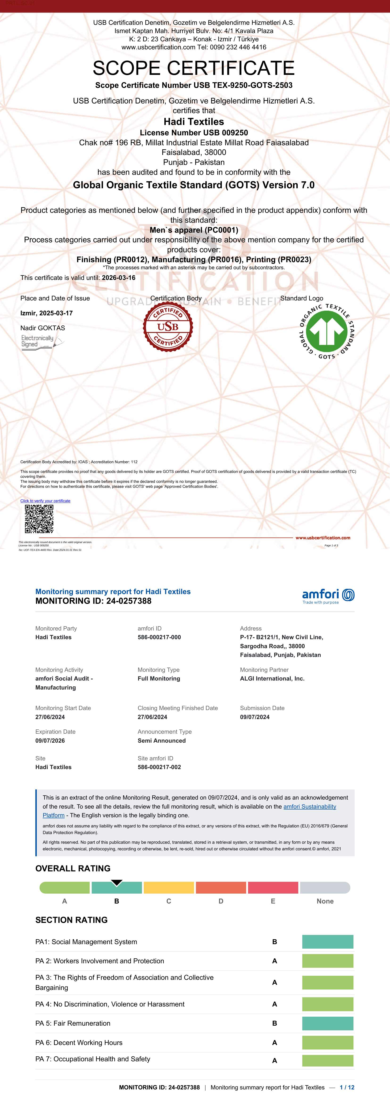 Our primary partner factory has been audited under Amfori BSCI, one of the most respected global frameworks for ethical manufacturing.