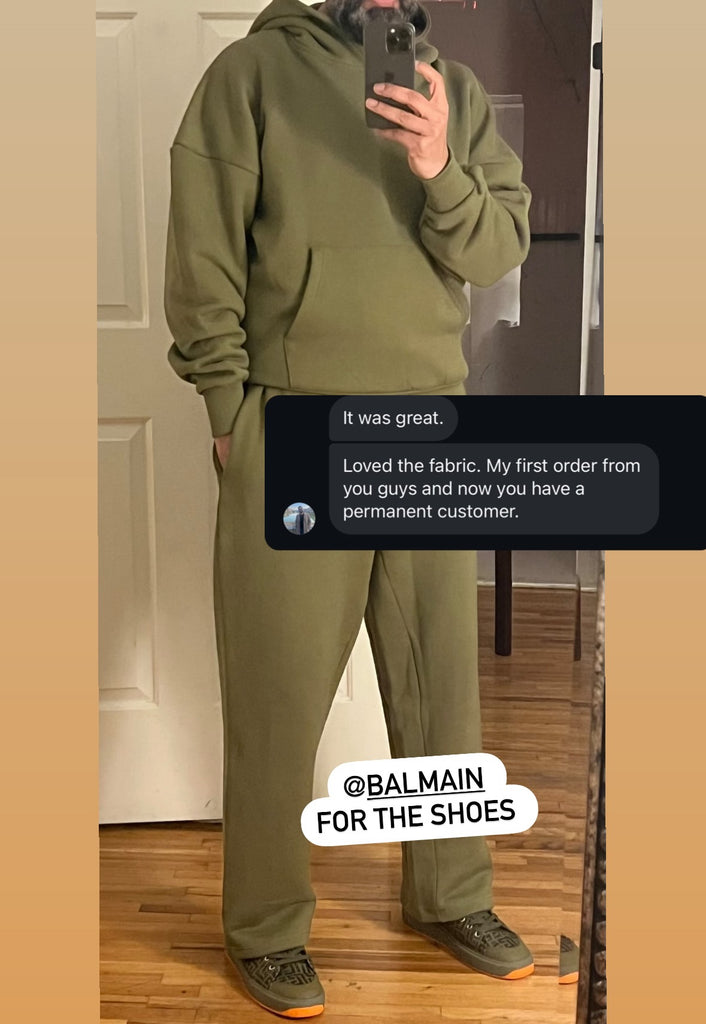 We develop our proprietary fabrics from the yarn up, working hand-in-hand with top-tier partner mills to engineer luxury-grade fleece and jersey that simply doesn’t exist off the shelf.
